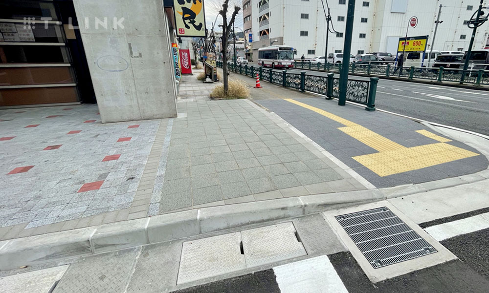 Explanation歩道に設置された照明の配線を笠木の中に通すことで殆ど掘削することなく整備
